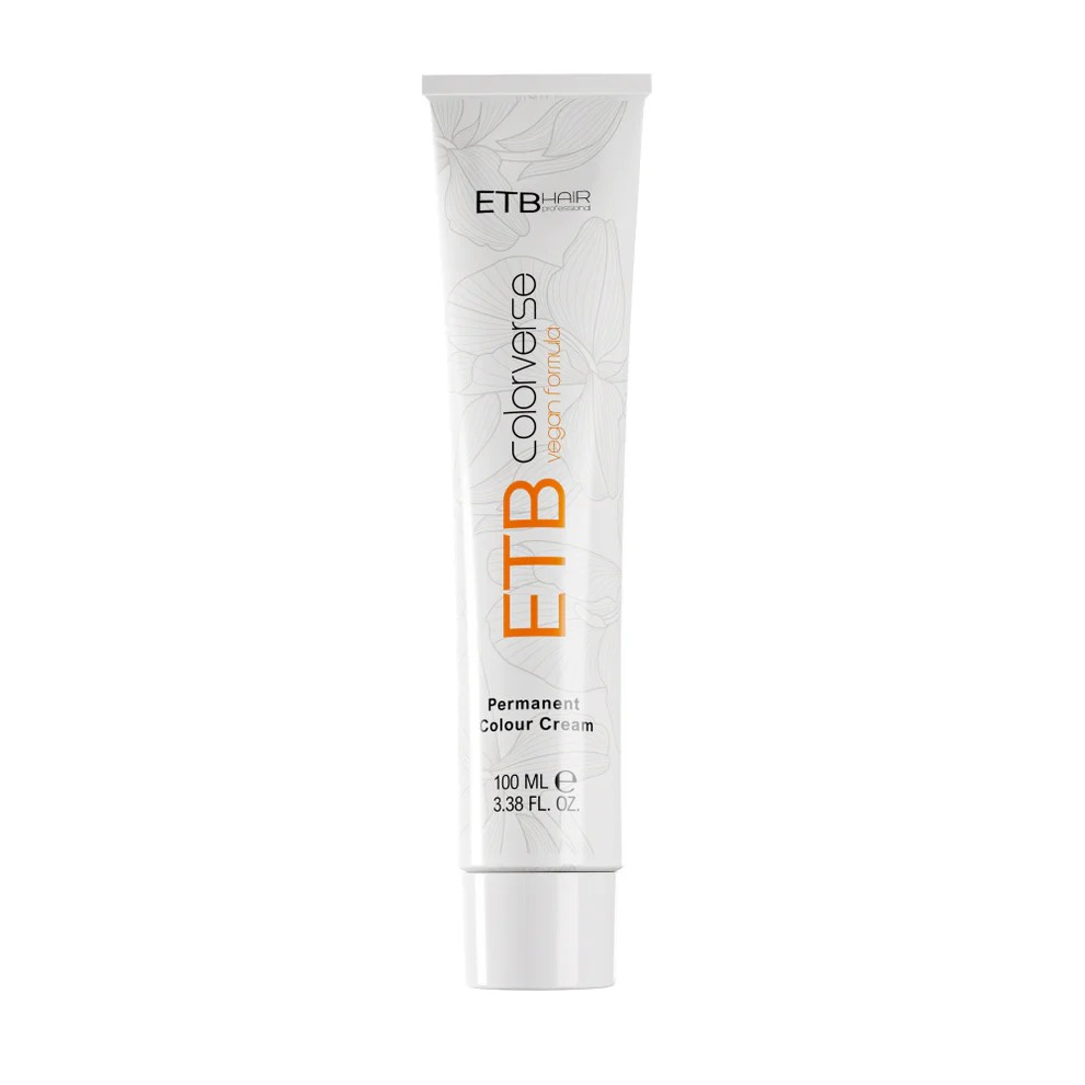 Die ETB Hair Permanent Color Creme ist eine professionelle Haarfarbe mit Ammoniak, die für 100 % Grauabdeckung, lebendige Farbergebnisse und intensiven Glanz sorgt. Die vegane, PPD-freie Formel mit Sheabutter, pflanzlichem Keratin und Goji schützt das Haar vor Austrocknung und verleiht Geschmeidigkeit.